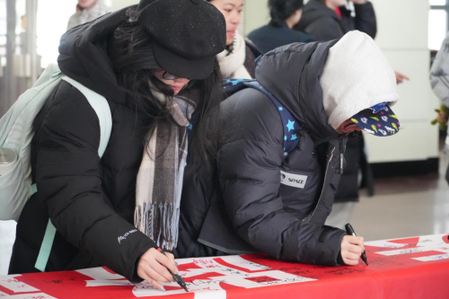 在工作人员引导下,各学院学生代有序上前,在条幅上郑重签下姓名,一笔一画间凝聚着遵守交通规则的坚定决心。半小时内,百余位参与者的签名布满条幅,成为校园里一道醒目的“安全风景线”。